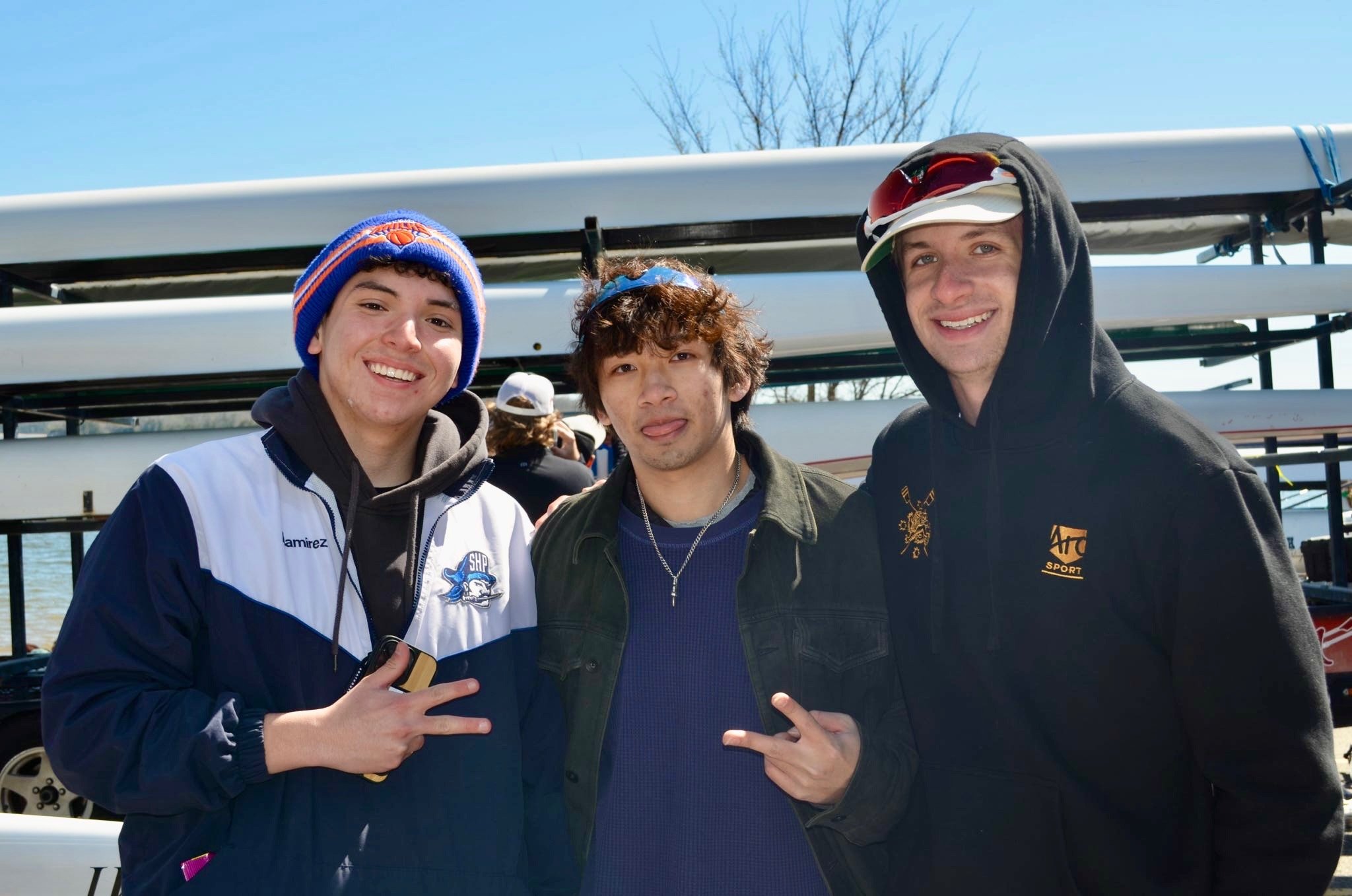 Sebastian T and Ryan O prepare to compete in the Mens 2- at ACRA 2025.